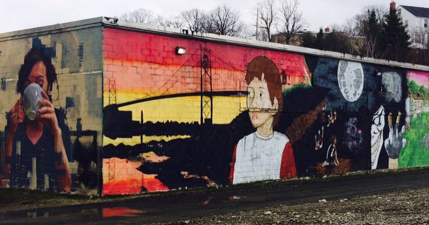 Downtown Dartmouth building art along the water.