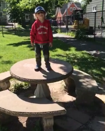 Lessons With Little Man Mason. Today’s Lesson: What Are Tables For? SITTING!